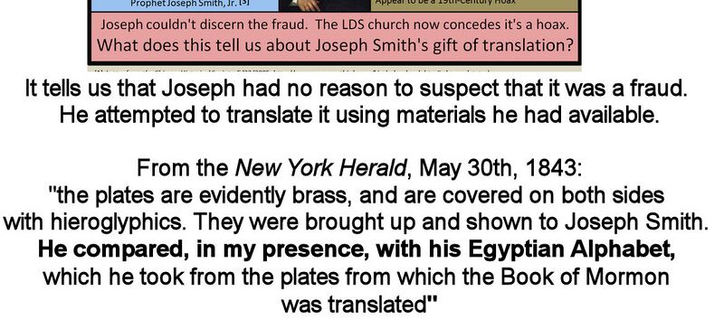 A critical graphic from "mormoninfographics" states that "Joseph didn't discern the fraud. The LDS Church now concedes it's a hoax. What does this tell us about Joseph Smith's gift of translation?"