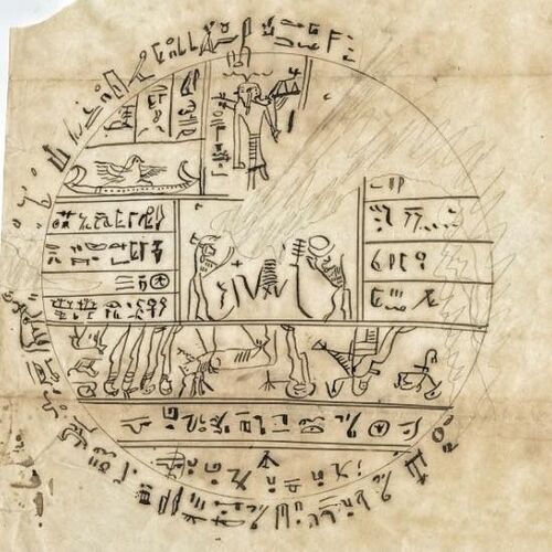 Summary: The illustration represented by Facsimile 2 is a hypocephalus, a disc made of linen, papyrus, or bronze, covered with inscriptions and images which relate to one of the last spells in the Book of the Dead. Joseph Smith's notes to Facsimile 2 identify it as representing God sitting in the heavens among the stars and others of his creations.