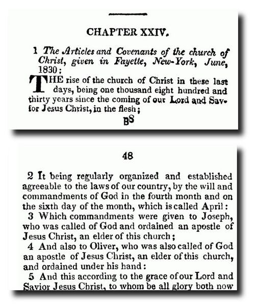 “El Sr. Oliver Cowdry tiene su comisión directamente del Dios del cielo, y que tiene las credenciales, escritos y firmados por la mano de Jesucristo, con quien ha conversado personalmente, y como tal, dicho Cowdry afirma que él y sus asociados son las únicas personas en la tierra que están calificados para administrar en su nombre. Por esta autoridad, se anuncia al mundo, para que todos los que no creen su testimonio, y ser bautizados por ellos para la remisión de los pecados. . . debe ser siempre miserable.”